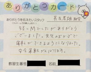 今月も教習生の皆様から頂く【ありがとうカード】をご紹介いたします♪
