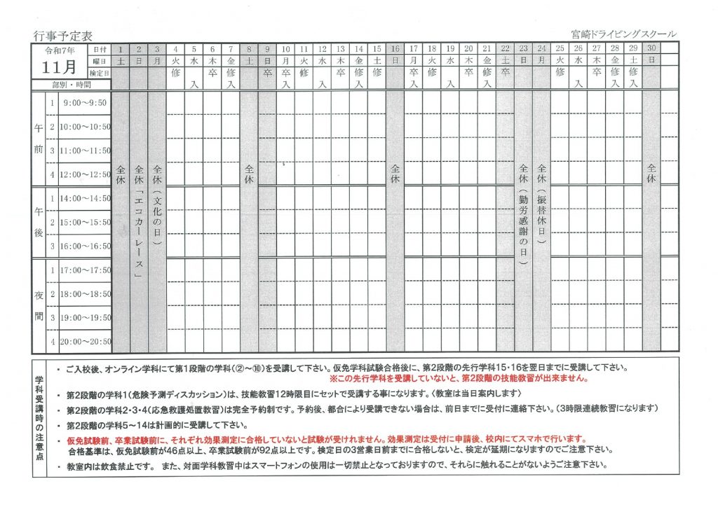 2025年11月の時間割をアップしました。